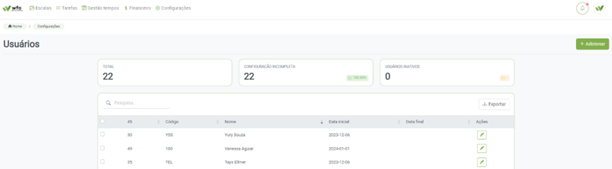 É onde definimos o que os colaboradores devem possuir acesso. Para personalizar o perfil de acesso será necessário seguir o passo a passo abaixo: a) Clique em Configurações/Gestão de Usuários/Acesso funcionalidades: b) Nesta tela é possível ajustar o ...