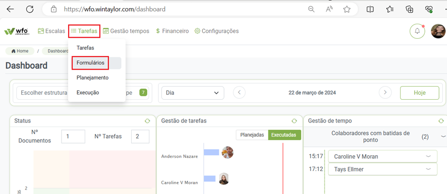 Clique em “Tarefas/Formulários”: