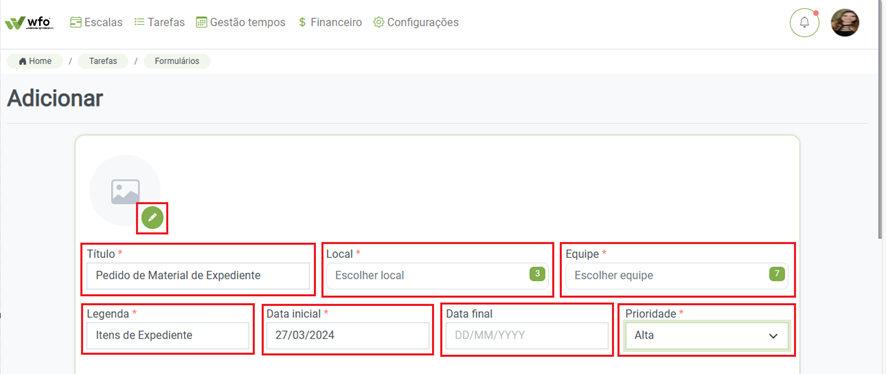 uma imagem para o Formulário que será criado. Prossiga com o preenchimento dos