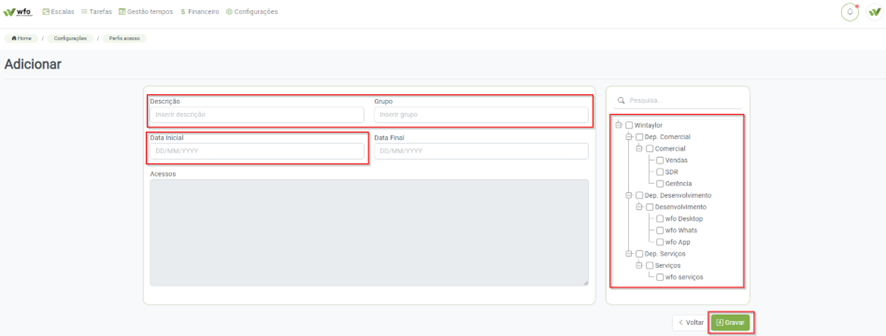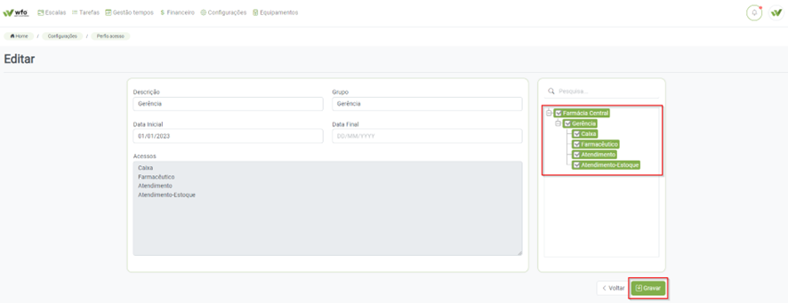 É onde definimos o que os colaboradores devem possuir acesso. Para personalizar o perfil de acesso será necessário seguir o passo a passo abaixo: a) Clique em Configurações/Gestão de Usuários/Acesso funcionalidades: b) Nesta tela é possível ajustar o ...