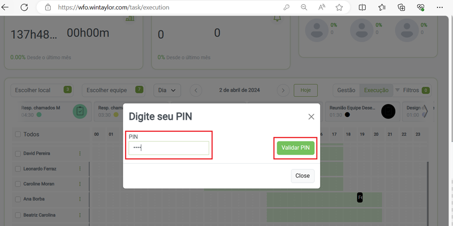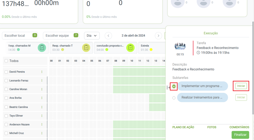 processo de selecionar a tarefa e digitar código PIN. Seleciona a subtarefa que será finalizada e clique em