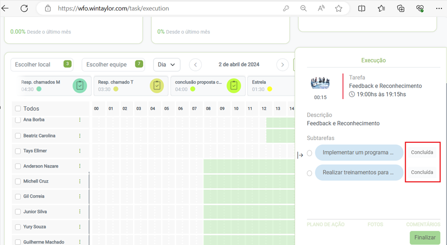 integralmente, cada subtarefa deve estar com o status “Concluída”: