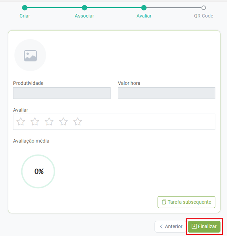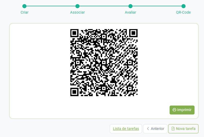 Ao finalizar, será exibido o QR Code da tarefa cadastrada.