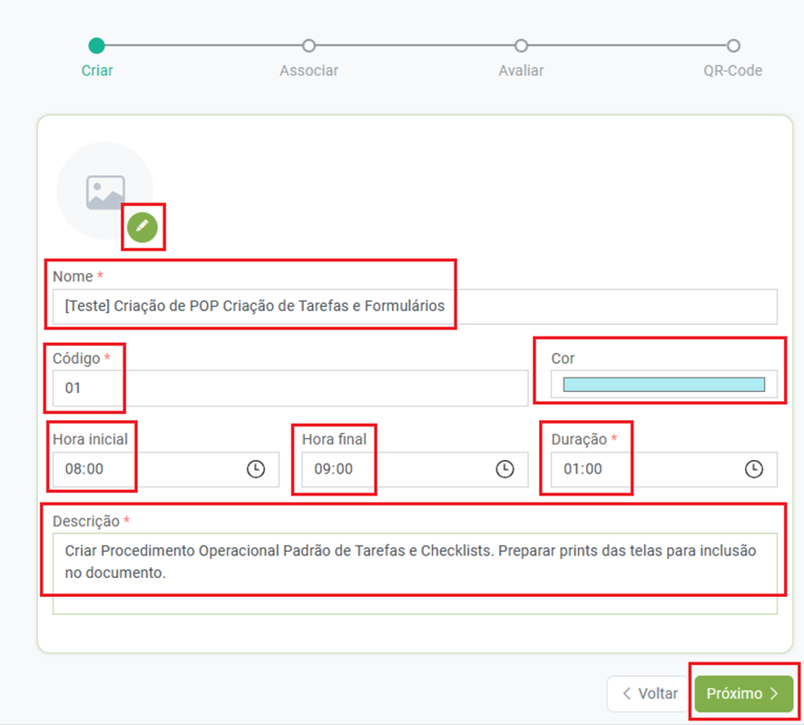 Descrição: Inclua informações ou orientações que o colaborador verá antes de executar a tarefa.